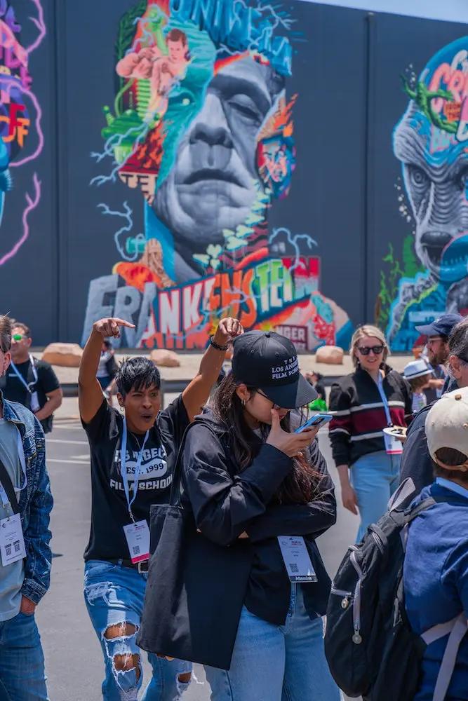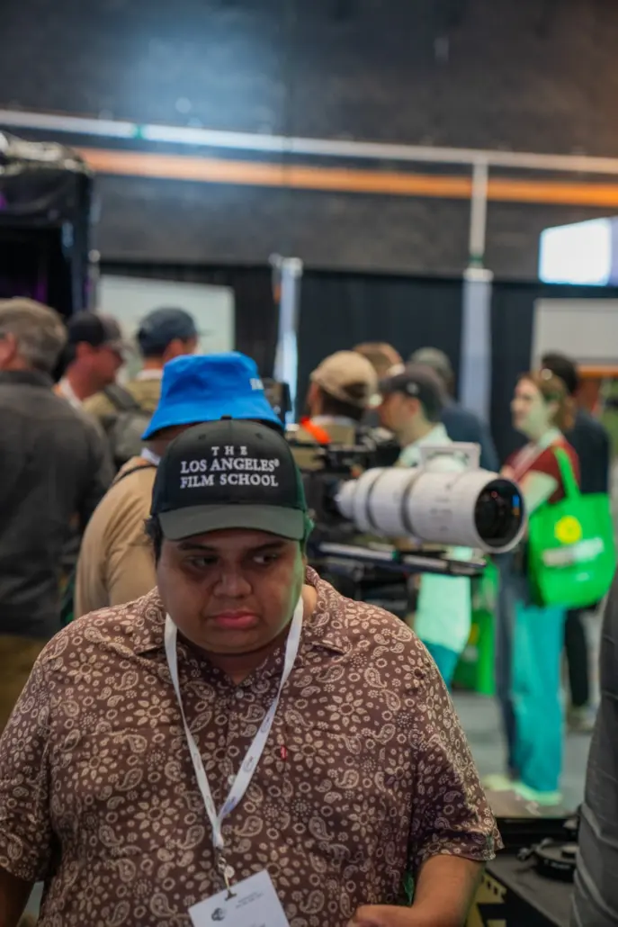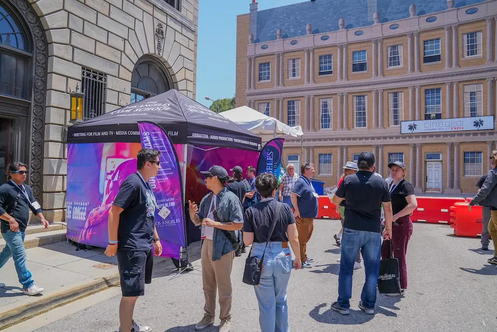 Staff and alumni were on location in Hollywood June 6-7, 2025, on the Universal Studios Lot. We had a dedicated booth and were among many hands-on exhibits and demonstrations from leading companies including ARRI, Aputure, Astera, Blackmagic Design, Cartoni, Creative Solutions, Fujifilm, RED, Leitz Cine, Nanlux, Matthews, Sony, Tiffen, and Zeiss, to name just a few. Our attendees got up close and personal with cutting-edge developments in camera, optics, lighting, and breakthroughs in virtual production, AI-assisted workflows, sustainable filmmaking practices, and more.