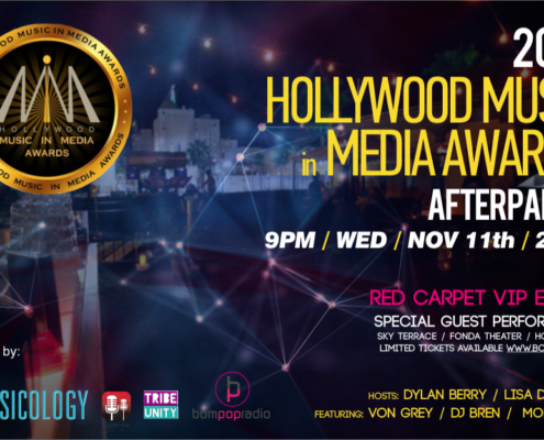 Blog, OpportunitiesThe Hollywood Music & Media Awards (HMMA) recognizes and honors the music of visual mediums (film, TV, movie trailers, video games, commercials, music videos, etc.), the talented individuals responsible for creating, producing and placing…