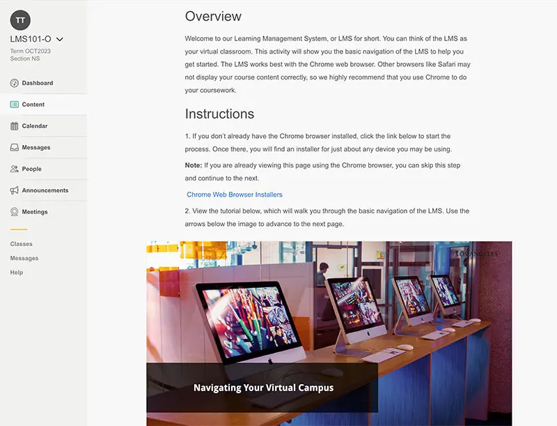 • Learning Management System (LMS): This platform provides access to online course materials. You’ll receive tutorials on how to log in and use the LMS after you complete your first two steps above.